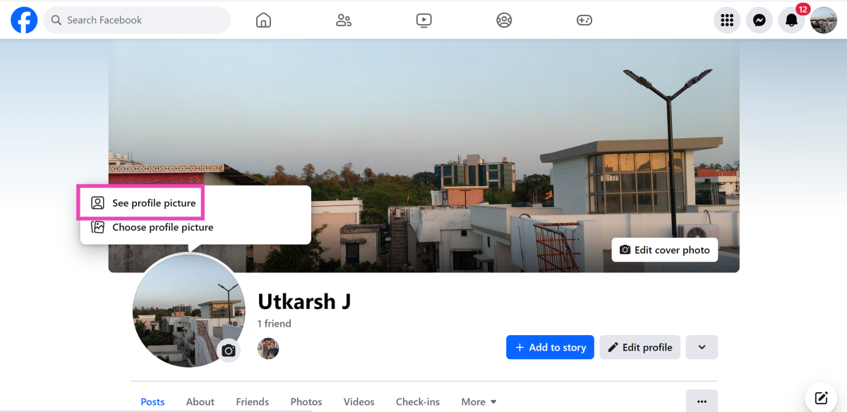 Trinn 2:Klikk på profilbildet ditt og velgSe profilbilde.