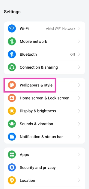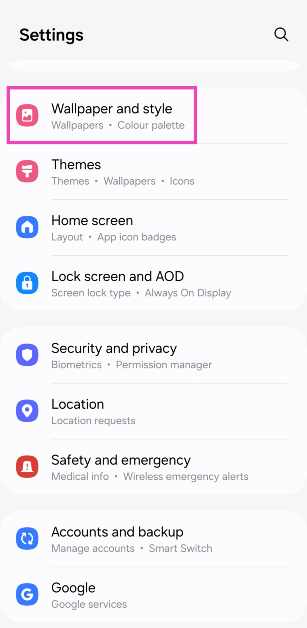 Trinn 1:Gå tilInnstillingerog velgTapet og stil.