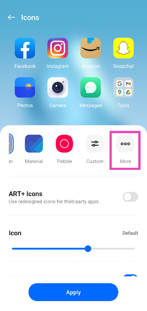 Trinn 3:Trykk påapp-ikonetfor å velge en annen fra en annen ikonpakke.