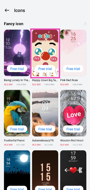 Trinn 4:Velg enikonpakkefra listen. Noen av alternativene kan kreve en liten betaling.