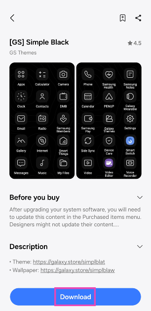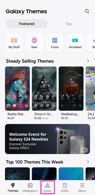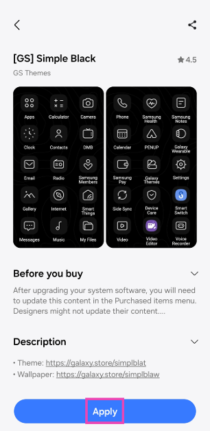 Appikonpakken vil bli brukt på alle de opprinnelige Samsung-appene på telefonen din.
