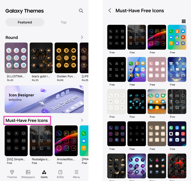Prosessen for å endre appikonet og navnet på Android-enheter varierer veldig mellom produsenter. Mens OnePlus-smarttelefoner tilbyr en naturlig måte å endre navnet på en app, er dette alternativet ikke til stede på Samsung-enheter. Imidlertid har hver produsent et mangfoldig bibliotek med ikonpakker for sine opprinnelige apper. Disse ikonpakkene kan lastes ned fra "Temaer"-delen på telefonen din.