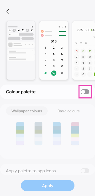 Trinn 5:Slå på vippebryteren for 'Bruk palett på appikoner’ og slårSøke.