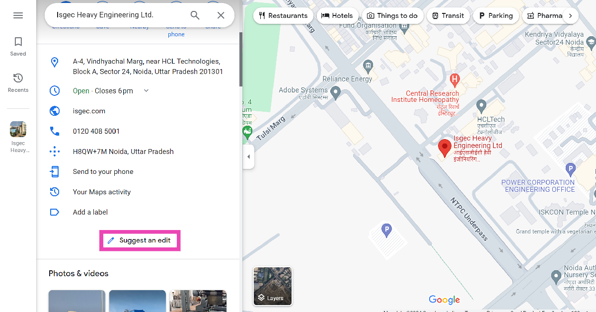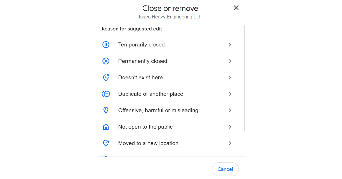 Når Google Maps har bekreftet rapporten din, vil plasseringen bli fjernet. På samme måte kan du redigere navnet og plasseringen til oppføringen også.
