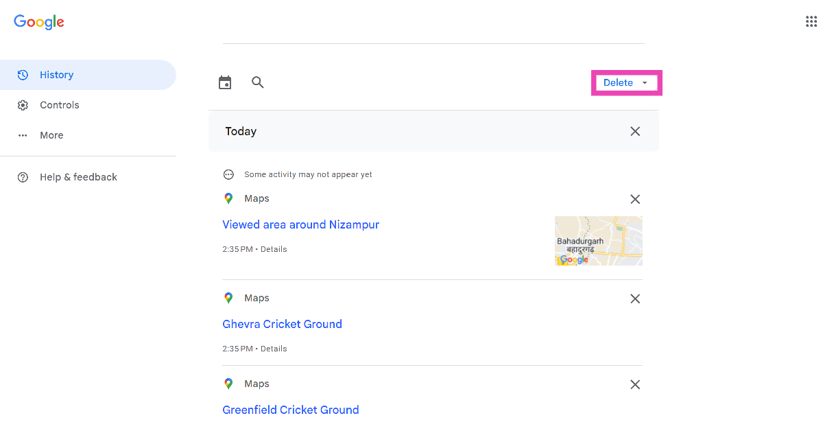 Trinn 4:På neste side, rull ned for å se dinplasseringshistorikki Google Maps.