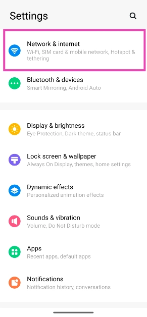 Trinn 1:Gå tilInnstillingerog velgNettverk og internett.