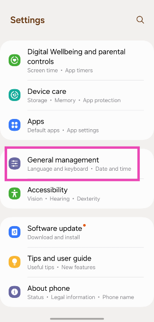 Trinn 1:Gå tilInnstillingerogGenerell ledelse.