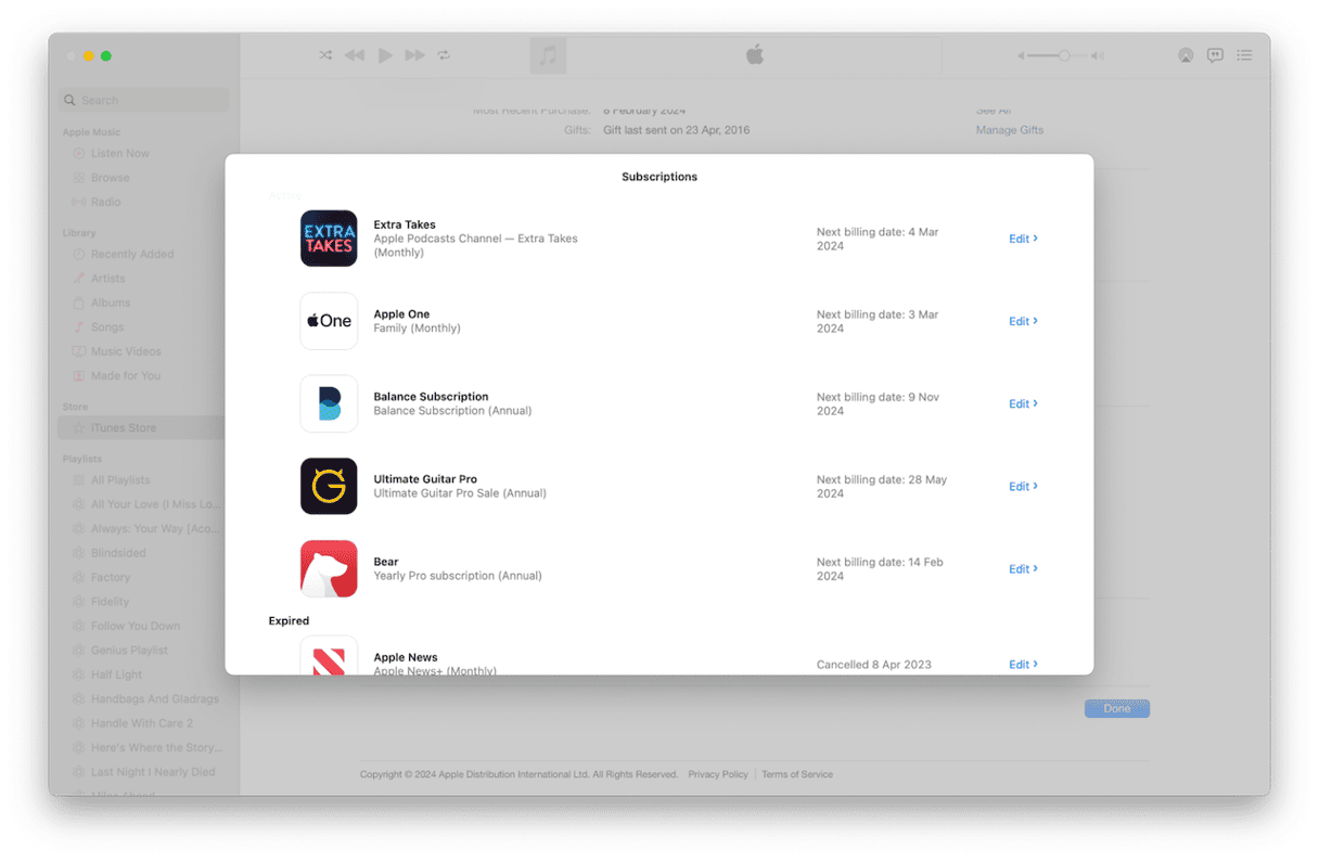 - Finn abonnementet du vil kansellere, og klikk på Rediger.