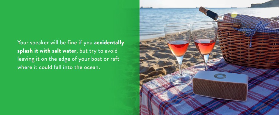 Även om även den bästa Bluetooth-högtalaren för stranden sannolikt fortfarande fungerar efter att ha varit nedsänkt i några meter havsvatten, kan de försämras med tiden eller börja rosta. Din högtalare kommer att fungera bra om du av misstag stänker saltvatten på den, men försök att undvika att lämna den på kanten av din båt eller flotte där den kan falla i havet.