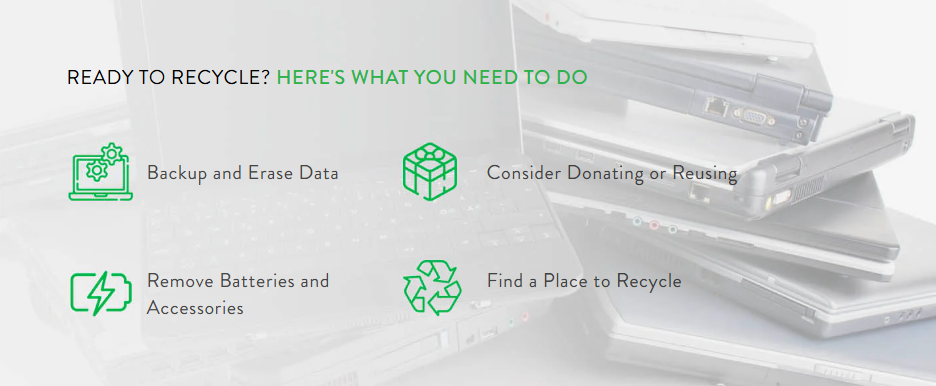 Om du har bestämt dig för att sälja eller återvinna dina gamla enheter istället för att slänga dem, har du flera alternativ för återvinning av elektronik, inklusive: