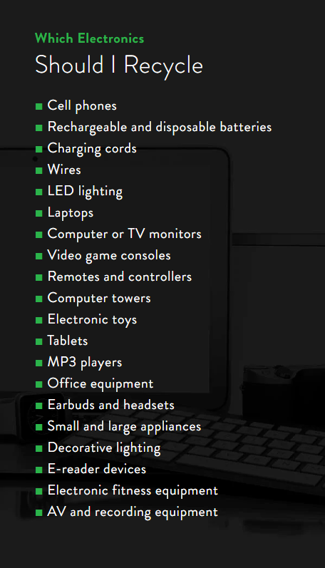 E-avfall inkluderar alla typer avanvänd elektronisk apparatdu inte längre använder och planerar att kassera, återanvända eller återvinna. På grund av antalet elektronik som ett genomsnittligt hushåll går igenom på ett år, är e-avfall ett ökande problem över hela världen. När en konsument inte längre vill ha en produkt, tenderar en av tre saker att hända: