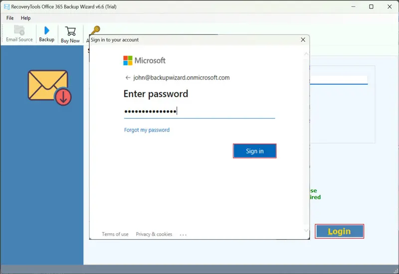 3. Nu kommer en Microsoft-inloggningssida att visas. Ange rätt lösenord och logga in på verktyget.