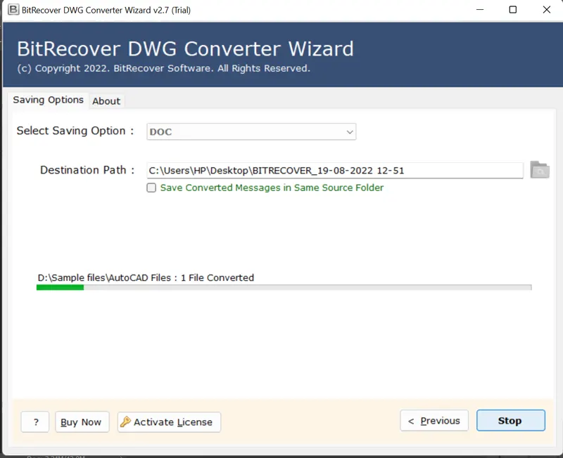 En av de bästa och starkt rekommenderade lösningarna ärBitRecover DWG Converter Tool, den här programvaran har många sofistikerade funktioner som att användare kan konvertera flera DWF-filer till DOC/DOCX-format i bulk med fullständig information. Dessutom kan användare enkelt stora DWF-filer utan några filstorleksbegränsningar. Några av de fantastiska och avancerade funktionerna nämns nedan: