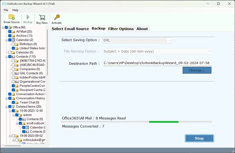 - Börja exportera Hotmail-e-postmeddelanden till PST-format genom att trycka på Backup-knappen.