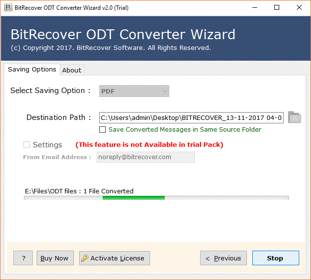 BitRecover ODT Converter Wizardär en pålitlig lösning som ger möjlighet att konvertera flera ODT-filer till PDF-format. Den levereras med en gratis demoversion som du kan använda för att utvärdera ODT till PDF Converter-funktionerna. Med denna programvara kan man enkelt göra en ODT-fil till ett PDF-dokument.