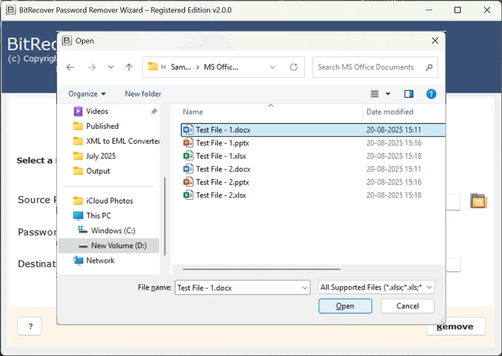 Det manuella sättet att ta bort lösenord från DOC är bra, men det kanske inte fungerar för de olika typerna av Word-, DOC- eller DOCX-filer. Om du har olika versioner av Word-filer eller applikationer kan du möta utmaningar. Men en professionell lösning somBitRecover Office Password Removerlåter dig ta bort lösenord från DOCX-filer, DOCX- eller Word-filer oavsett om du har skapat det med någon version av Microsoft Word-applikationen. Det erbjuder det enklaste och enklaste sättet att snabbt ta bort lösenord från Word inom några sekunder.