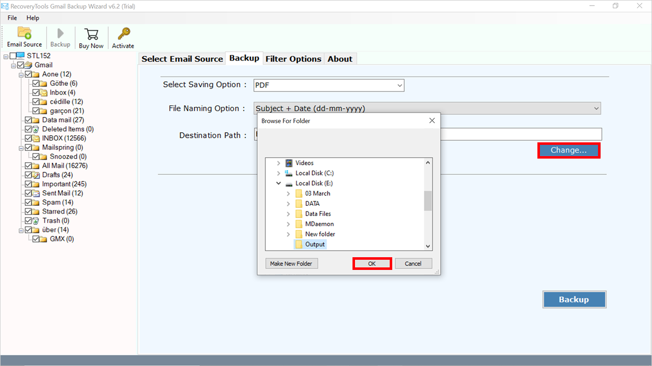 - Klicka nu på bläddringsalternativet för att välja destinationssökväg där du vill spara filen.