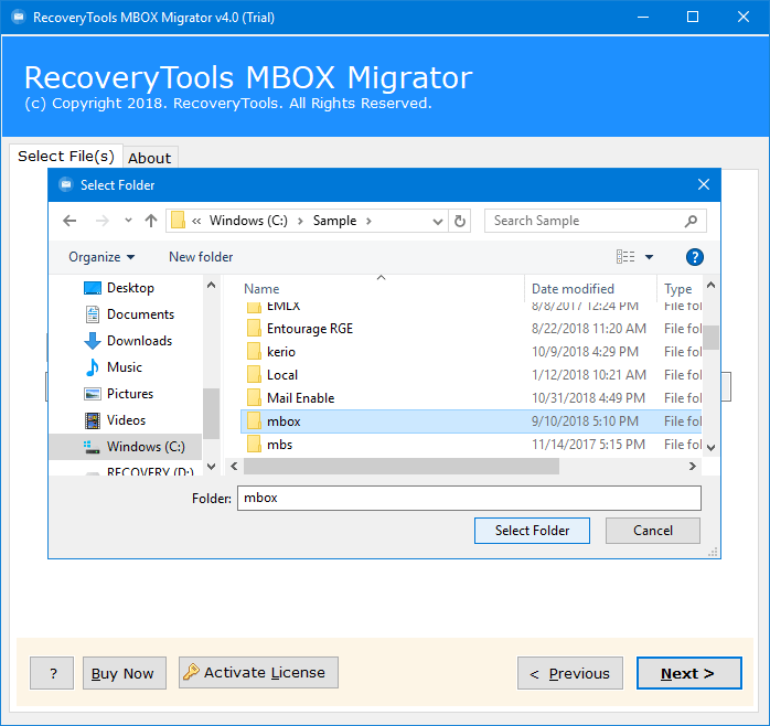 - Välj sedanMBOXsom sparalternativ från programvaran.