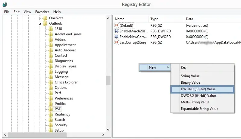2. Navigera till: HKEY_CURRENT_USER\Software\Microsoft\Office\16.0\Outlook\Options\Mail