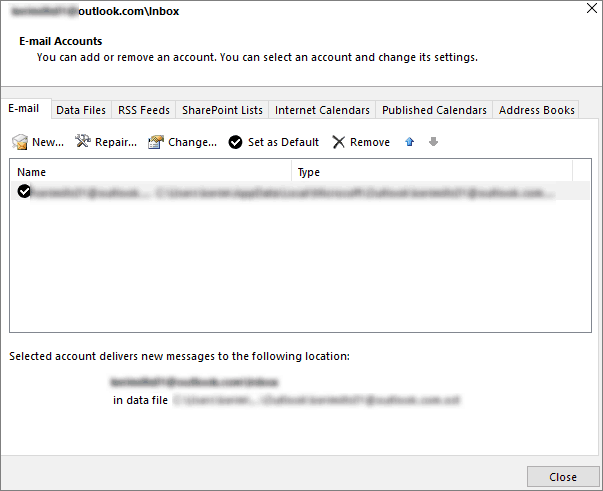 - Under fliken E-post väljer du ditt e-postkonto och dubbelklickar på det.