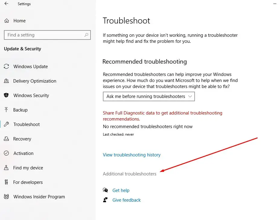 - Klicka på länken Ytterligare felsökare (se bilden nedan)