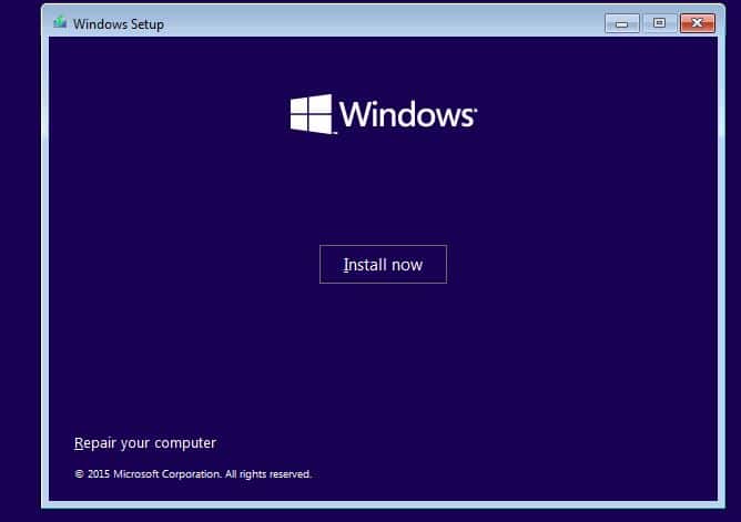 - Starta från installationsmediet och hoppa över den första skärmen,