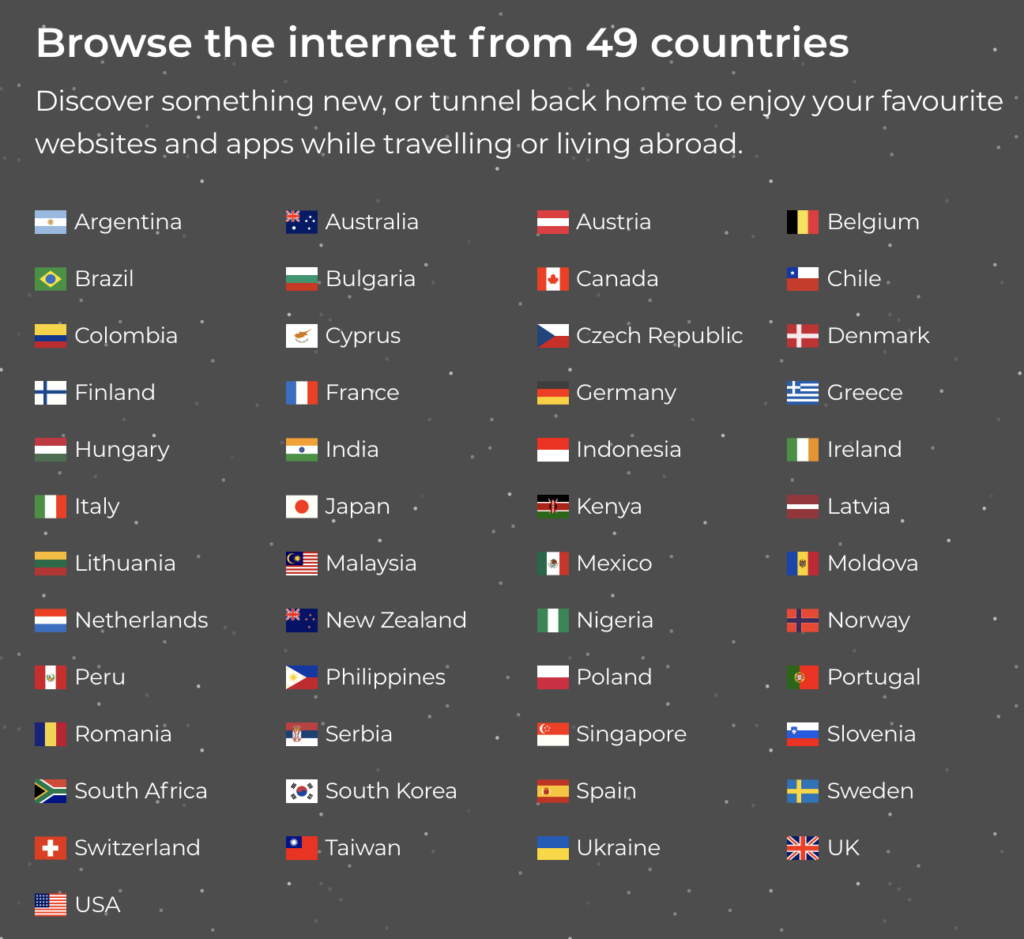 Trots sin popularitet bland användare,TunnelBear servernätverkär liten när allt är sagt och gjort. Det är i drift i 49 länder för att vara exakt.