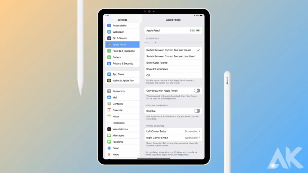 Detta kommer att få den att fungera bättre och svara snabbare när den är ansluten till en lämplig iPad. Användare kan också ändra Apple Pencil 3-inställningarna i iPads inställningar för att förbättra ritning och skrivning genom att ändra saker som känsligheten för tryck och vägran av handflats.