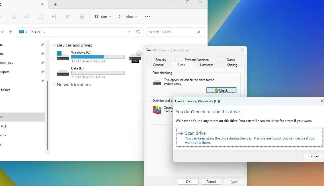 Kör Chkdsk från File Explorer