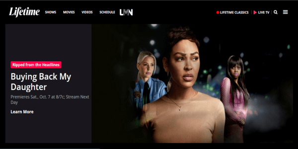 Du kan aldrig bli uttråkad med Lifetime eftersom du kan få tillgång till hela säsonger av populära program. Debiblioteket uppdateras dagligenatt inkludera de senaste avsnitten, bakom kulisserna och förhandsvisningar av TV-innehåll. Bevakningslistan håller också koll på dina intressen.