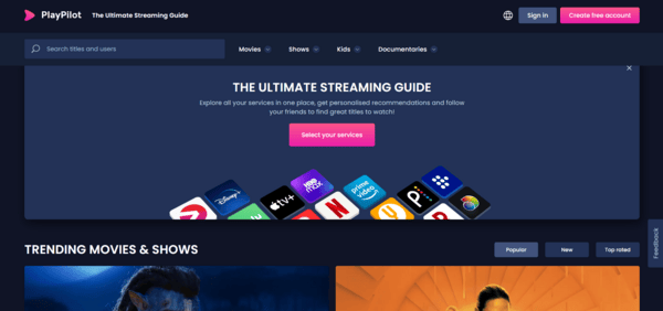 - PlayPilot: Den ultimata strömmande sökmotorn för att titta på nya filmer på över 20 plattformar utan stress. Den finns i 26 länder.