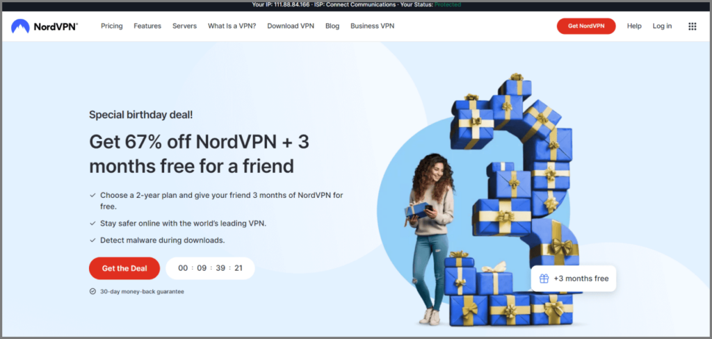 NordVPN är din bästa insats för frihet och säkerhet online. Det låter digstreama blockerat innehåll och kringgå geografiska begränsningarutan krångel. Den har enFunktionen "Dubbel VPN".som ger avancerad säkerhet och skydd utan extra kostnad.
