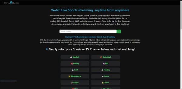 Stream2Watch är ett utmärkt alternativ till USTVGO. Denna webbplats tillhandahållerhundratals livekanalersom alla är tillgängliga för gratis streaming. Dessa kanaler är indelade i flera kategorier: underhållning, sport, nyheter och andra.