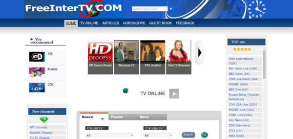 FreeInterTV tillhandahållerhundratals livekanalersom alla är tillgängliga för gratis streaming. Dessa kanaler är indelade i flera kategorier, inklusive nyheter, underhållning, sport, internationellt och religion, bland många andra. Den här sidan är ett utmärkt alternativ till USTVGO eftersom det är detgratis och kompatibel med alla internetanslutna enheter.