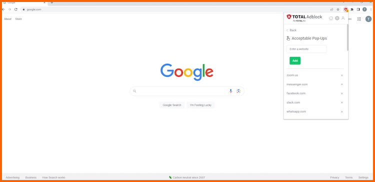Även om Total Adblocks funktioner kan se relativt små ut jämfört med andra annonsblockerare, kan du vara säker på premiumskydd från adware.Det kan låta dig anpassa blockeringsfiltret för att tillåta specifika annonser eller popup-fönster du vill ha. Du kanske till exempel vill få annonser om reklamförsäljning eller engångserbjudanden.