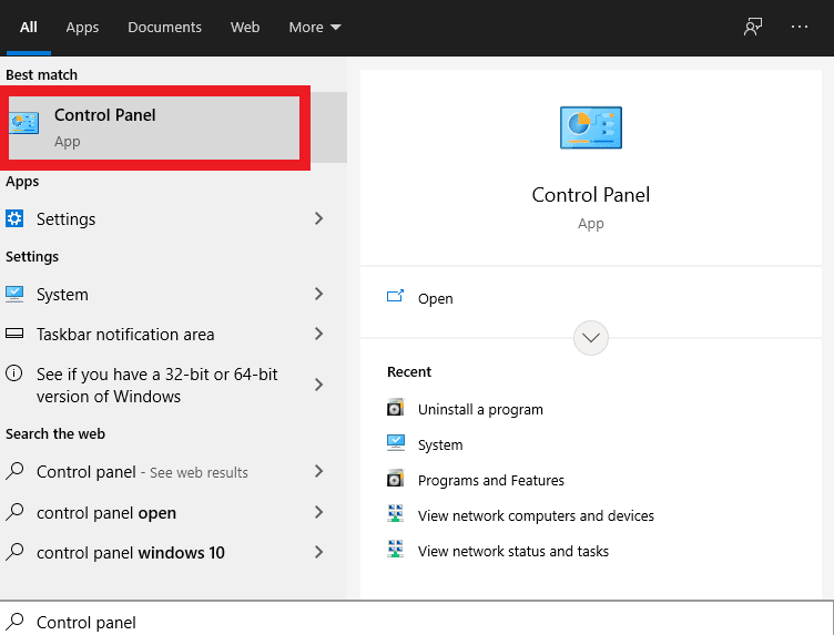 - Gå över till din dators "Kontrollpanelen" och öppna den.