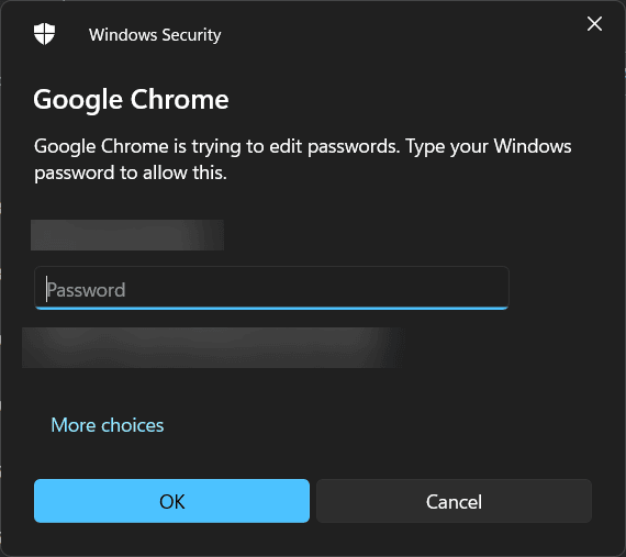 7. Efter ett klick på "Exportera lösenord,” kommer ett säkerhetspopup-fönster att visas som ber om enhetens PIN-kod eller lösenord.
