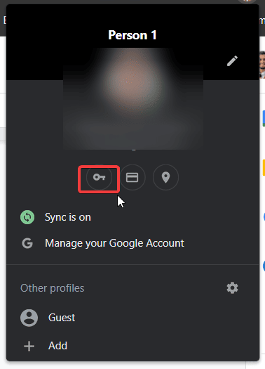 3. Klicka på "nyckelikon", vilket öppnar webbläsarens lösenordsinställningar.