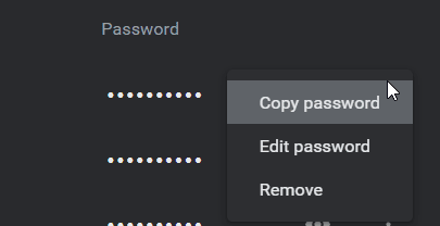 4. Klicka på de tre prickarna på höger sida av "sparat lösenord" alternativet.
