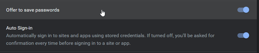 4. Slå på alternativet för"erbjud dig att spara lösenord.”