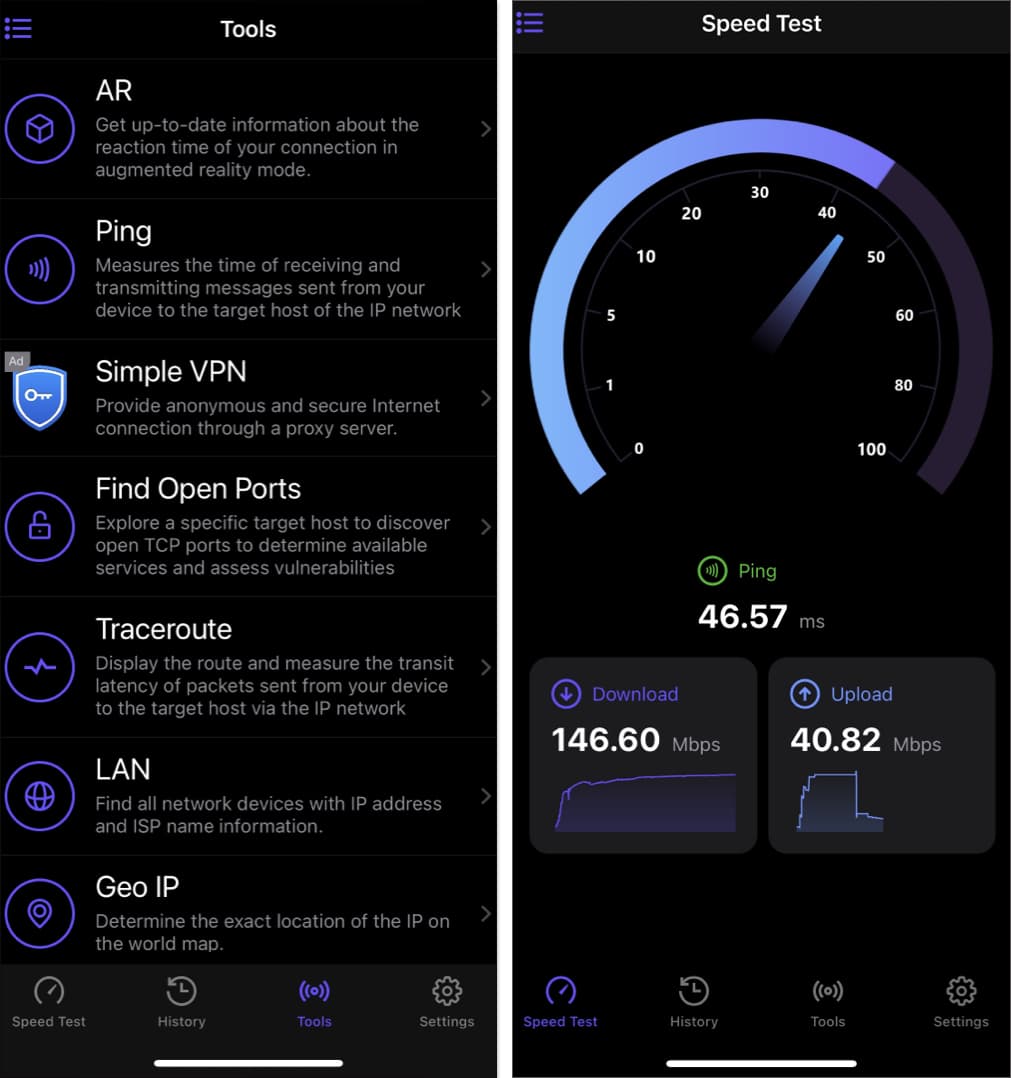 Dom:Välj Speedtest by Ookla om du är nybörjare och inte behöver verktyg för nätverksdiagnostik.