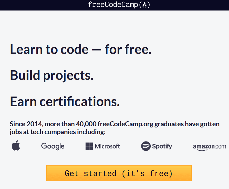 Som namnet antyder är freeCodeCamp en lärplattform med gratis programmeringskurser. Om du precis har börjat och ännu inte är säker på vilka kodningsspråk du ska fokusera på, är freeCodeCamp en bra början.