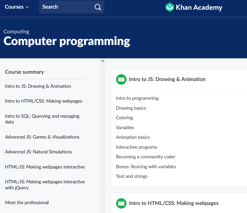 Khan Academy är perfekt om du precis har börjat. Det har aldrig varit lättare att lära sig grunderna i datorprogrammering på vilket språk som helst och det är gratis. Och det bästa av allt är att du inte ens behöver registrera dig för ett konto. Du börjar lära dig hur man kodar direkt.