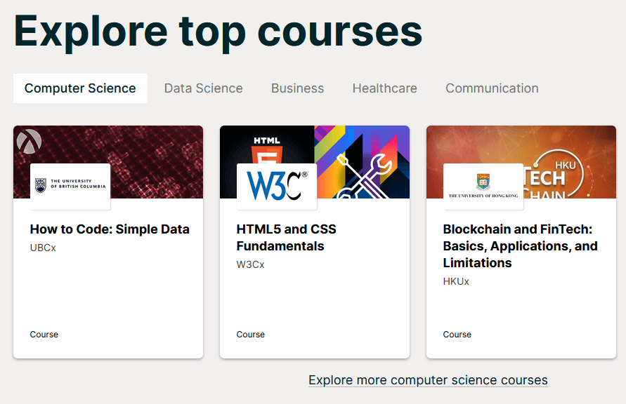 Om du är ett stort fan av formell utbildning kan edX vara den bästa platsen för att lära dig kodning. Det erbjuder programmering och datavetenskap på högskolenivå från de mest välrenommerade universiteten i världen.