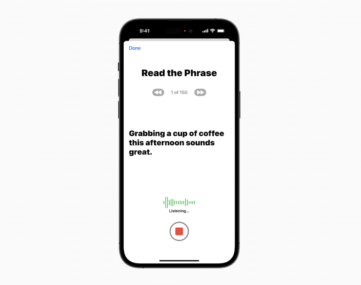 Med hjälp av iPhone eller iPad kommer användare att kunna skapa en personlig röst genom att läsa en slumpmässig uppsättning texter för att spela in 15 minuters ljud. Det kommer också att integreras med Live Speech så att de kan svara med sin egen röst.