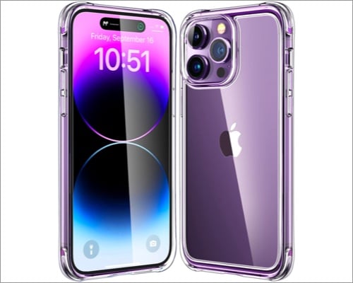 Du kan gå med i-Blason Ares iPhone genomskinliga skal om du inte vill ha ett normalt robust fodral. Den täcker varje springa och kanter på din iPhone 14 Pro och ger ett skyddande genomskinligt skal för hela kroppen. Eftersom fodralet redan innehåller ett inbyggt beröringskänsligt skärmskydd med frontramen finns det ytterligare en fördel med att använda detta fodral.