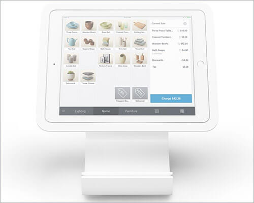 Squareup iPad POS-ställ är ett av de enklaste POS-ställen du kan begära. Det är också en av de billigaste på bara cirka $99. Det är inte specialbyggt för specificitet men det passar de flesta användningsfall lätt. Det är också Square-specifikt vilket innebär att du måste använda Squares tjänster för att behandla betalningen. Om du är det, så är detta ett perfekt ställ att gå för.