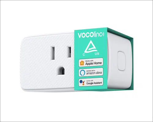 VOCOlinc har designat en utrymmesbesparande smart kontakt för att styra dina elektroniska enheter. När du har anslutit kontakten till ditt Wi-Fi-nätverk i hemmet kan du styra den var som helst från Apple Home (iOS) eller VOCOlinc-molnet, som fungerar på Android-enheter.