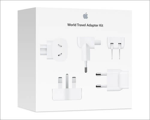 Om du är en Apple-fanboy och använder alla Apple-enheter är detta internationella reseadaptersats ett perfekt val. Satsen innehåller en uppsättning av sju AC-kontakter som enkelt passar in i olika eluttag i världen. Du kan kontrollera den laseretsade informationen (regioner de är kompatibla med.)