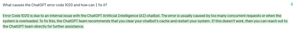 Vad orsakar ChatGPT-felkoden 1020?